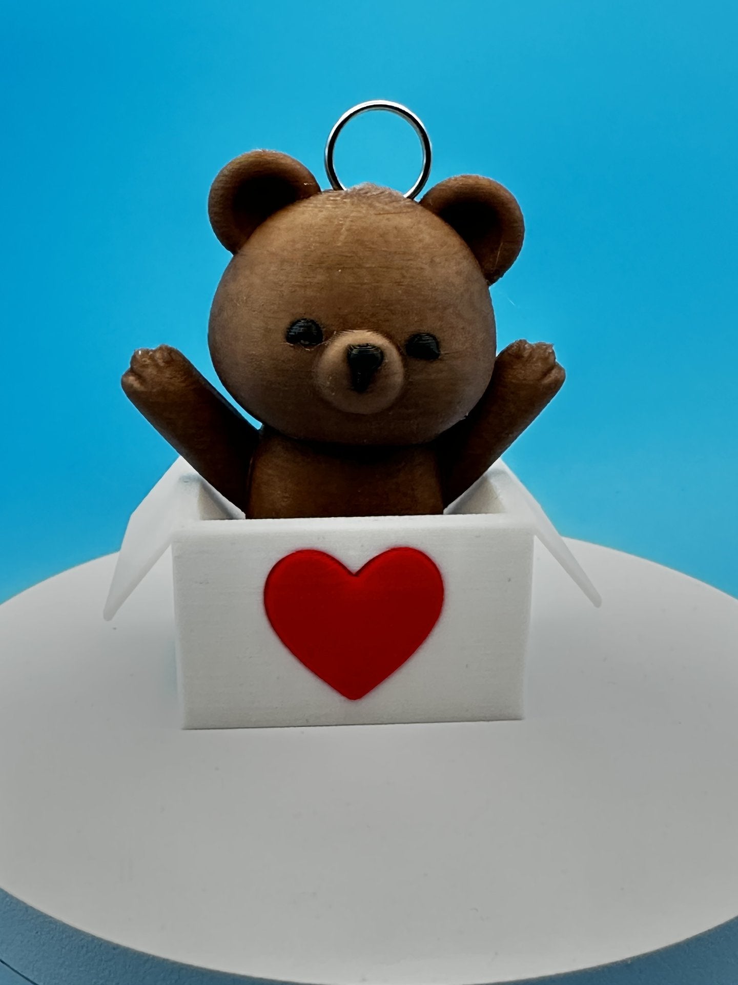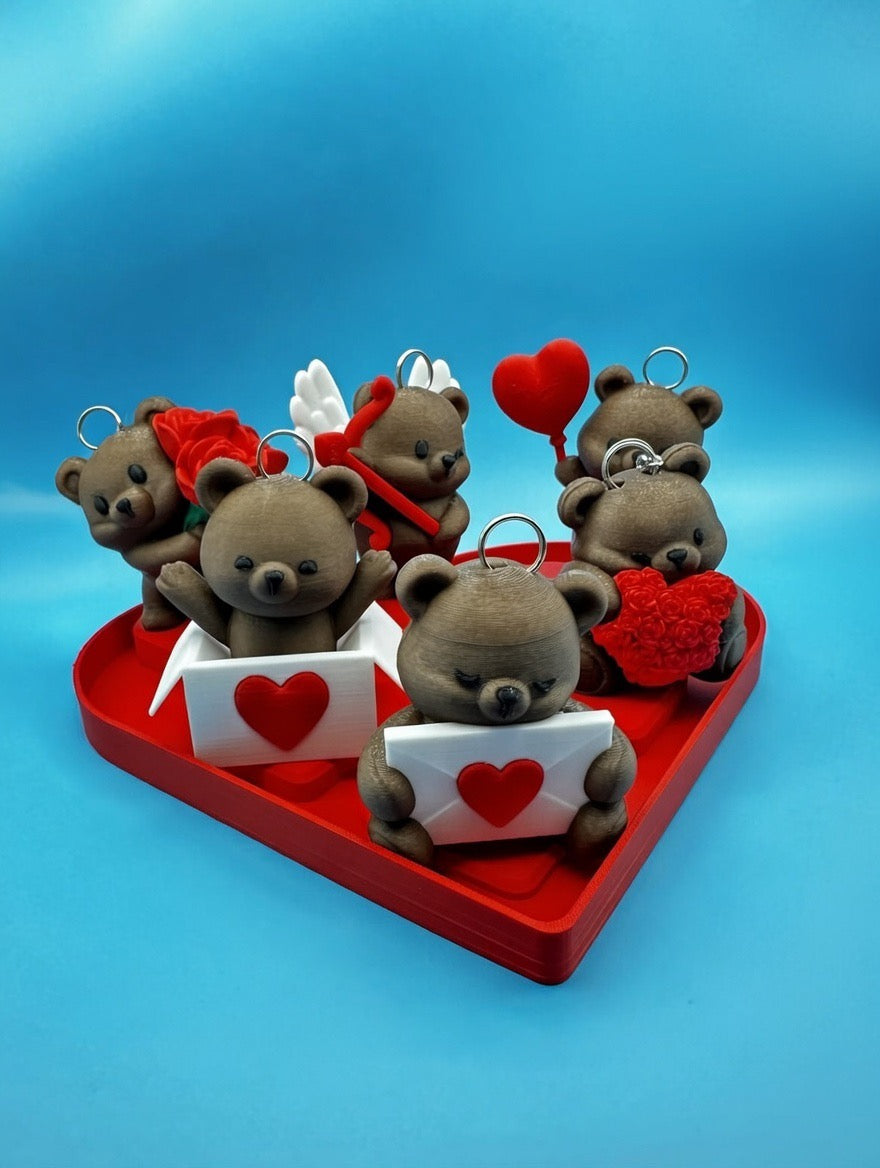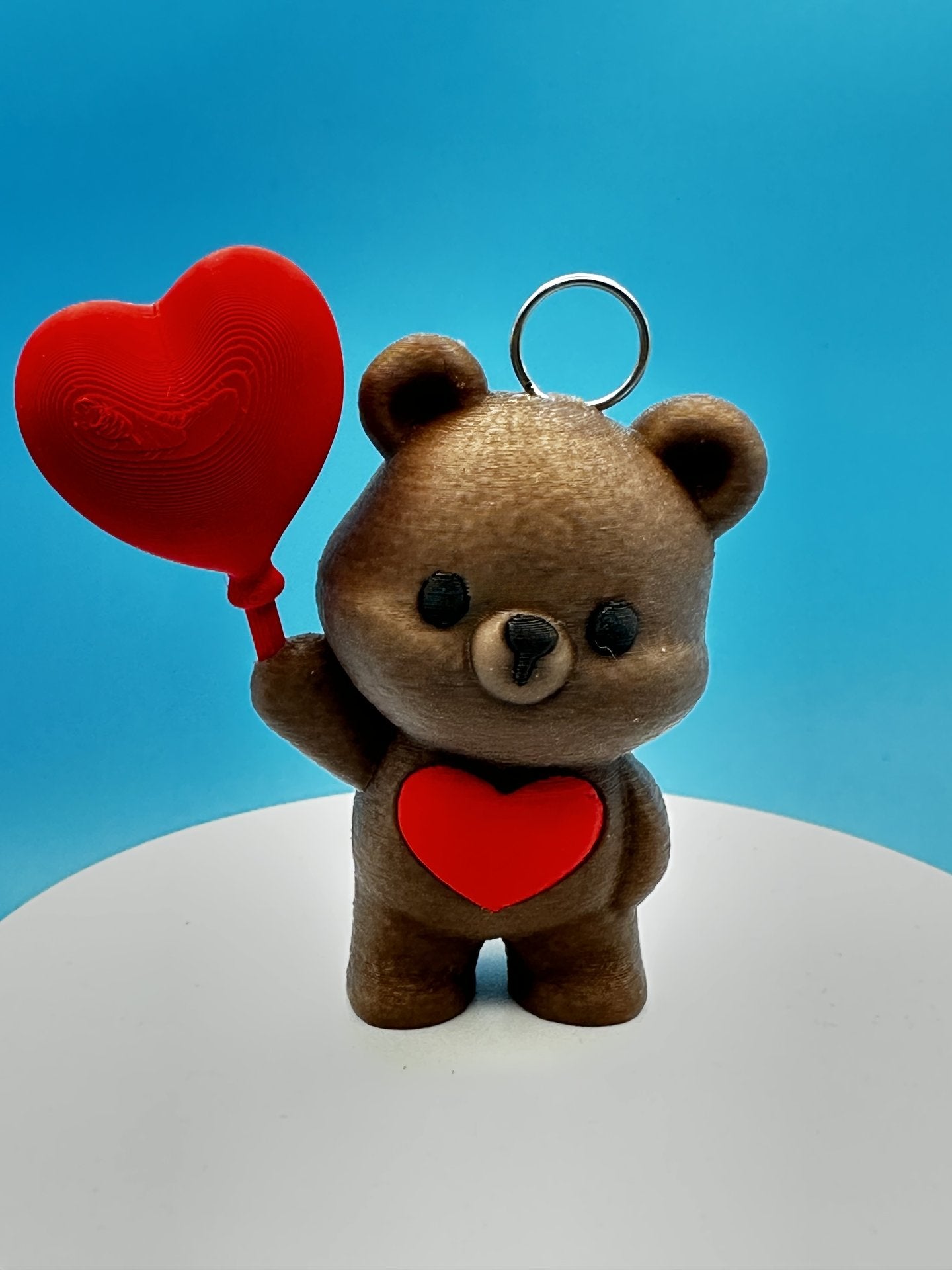 Durch präzisen 3D-Druck entstehen liebevoll gestaltete Teddys mit verspieltem Ausdruck, feinen Details und leuchtend roten Herzen – praktische kleine Begleiter für Schlüssel, Taschen oder Rucksäcke.